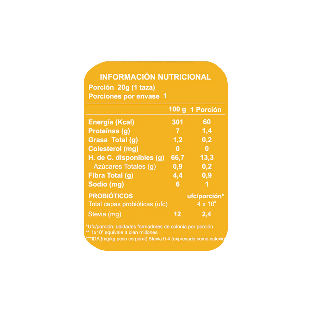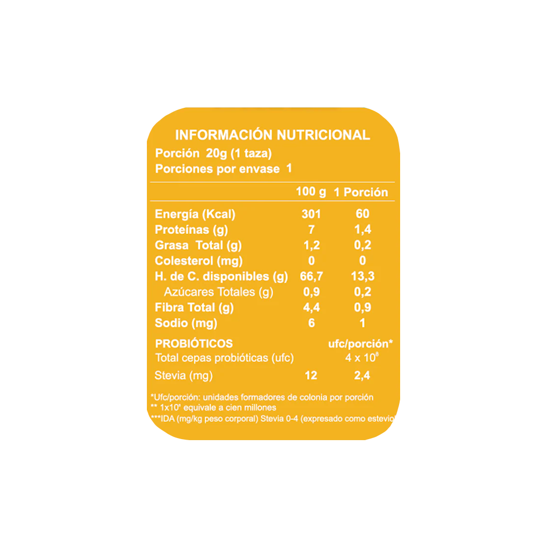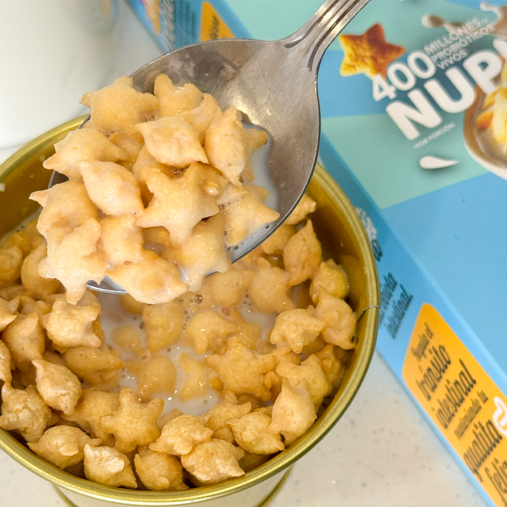 El único cereal en el mercado con 400 millones de Probióticos premium NUP, hechos en Chile con Inteligencia Artificial, que refuerzan tu sistema inmune y digestivo. Vegano, sin gluten, con 0% azúcar añadida y bajo en calorías.