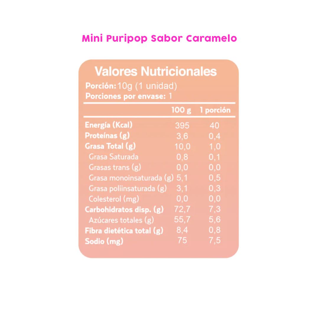 Caja Master incluye: 60 Puripop Caramelo 10 g (formato mini)