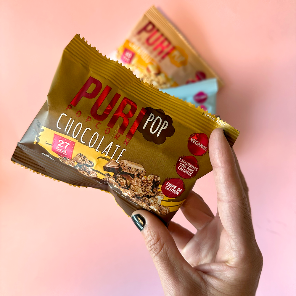 Puripop Chocolate es ideal para quienes aman el sabor del cacao, pero buscan una alternativa más liviana y natural. Crujientes, dulces y con el toque justo de chocolate, son perfectas para llevar al colegio, a la oficina o para darte un gusto bajo en calorías durante la semana.