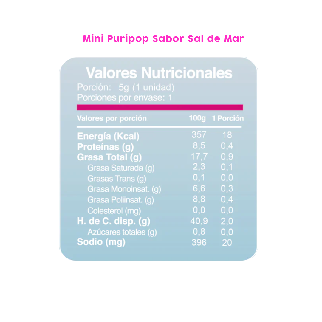 Caja Master incluye: 60 x Puripop Sal de Mar 5 g (formato mini)